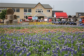 四季彩の丘です。私にとっては、この美瑛町の四季彩の丘は、いつ訪れても楽しいし、楽しく感じられる場所です。好きな場所です。四季彩の丘の入口を入ってすぐのところに植えられたルピナスです。向かって左側に小さなアルパカ牧場(有料)があります。