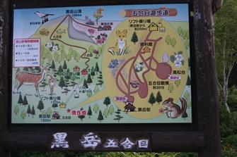 和寒町は曇り空。しかし、この日の目的地の層雲峡・黒岳周辺は風が強く晴れていた。層雲峡にあったセブン・イレブンで北海道男爵フックラ牛肉コロッケ88円・ハムとタマゴのサンド270円・お握り3個370円・お茶を購入し、大雪山層雲峡・黒岳ロープウェイ乗り場に向かった。車は、ロープウェイ乗り場まで少し歩かなければいけないが、その手前にある広い無料の層雲峡駐車場に駐車した。そこで登山靴に履き替え、ロープウェイで層雲峡駅から黒岳駅(5合目)まで向かった(往復1,950円/人)。中国系の観光客と共に欧米系の観光客もいた。黒岳駅に着いて、そこで昼食をとったのだが、それでも強い風が吹いていたので、黒岳頂上までの登山は諦めることにした。下に載せた黒岳案内板(写真)を見ていただけば分かるように、以前登山した時には、リフトで7合目まで行き、そこから頂上まで登った。それは、穏やかな日だった。写真では、7合目から所要時間1時間30分となっているのだが、私の場合は2時間を要した。このような訳で、今回は、5合目黒岳駅遊歩道を散策することにした。