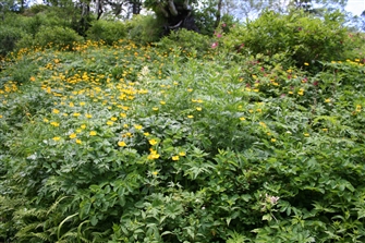 黒岳駅のすぐ近くに咲くチシマノキンバイソウ(黄色)とオオタカネバラ(赤色)です。旭岳の姿見駅周辺に広がるお花畑のような広大さはないのですが、これ以外にもさまざまな花が咲いていました。大雪山系のお花畑の、その広大さ・その花の種類の多さは、やはり日本一ではないでしょうか。旭岳もそうでしたが、登山者の数も程々でちょうどいい感じです。